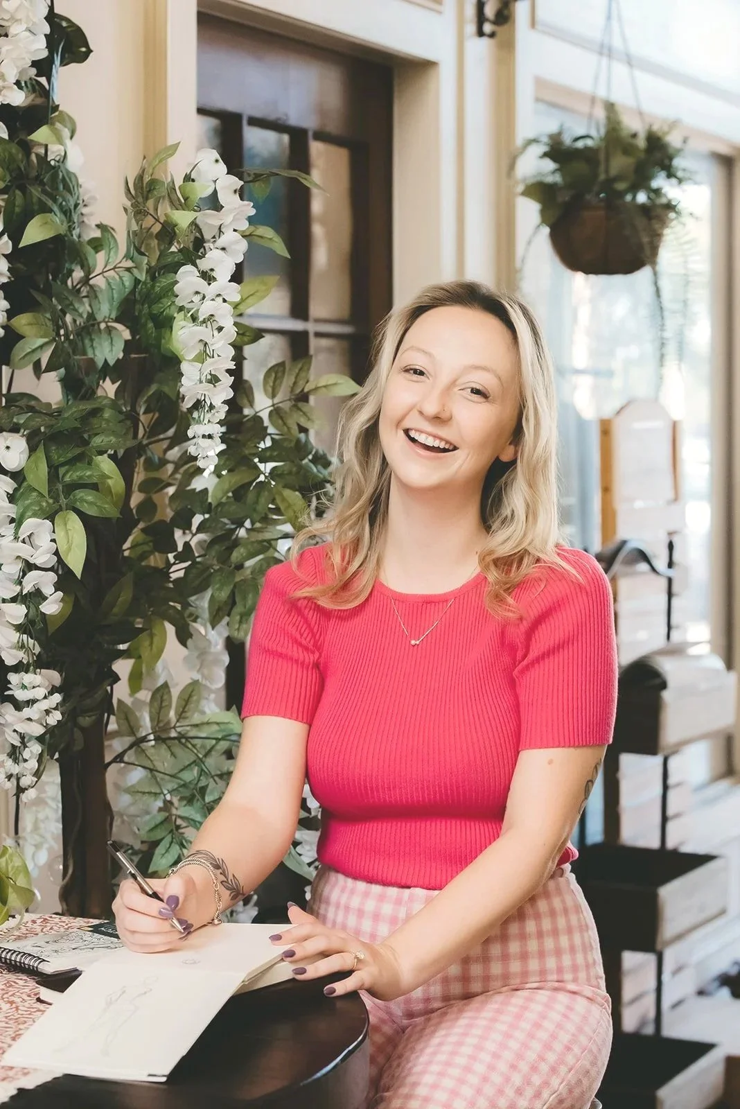 Daphne has been immersed in art since childhood, exploring many mediums and always keeping her creative spark alive. After pursuing an entrepreneurship degree and working in corporate tech sales, she followed an undeniable pull toward a more colorful, authentic life as an artist. In her studio, Daphne’s work often features flowers, gardens, seasonal fruits, and landscapes. She loves the fast pace and fluid nature of live painting, enjoying the moment her clients’ faces light up when they see their own custom piece come to life.